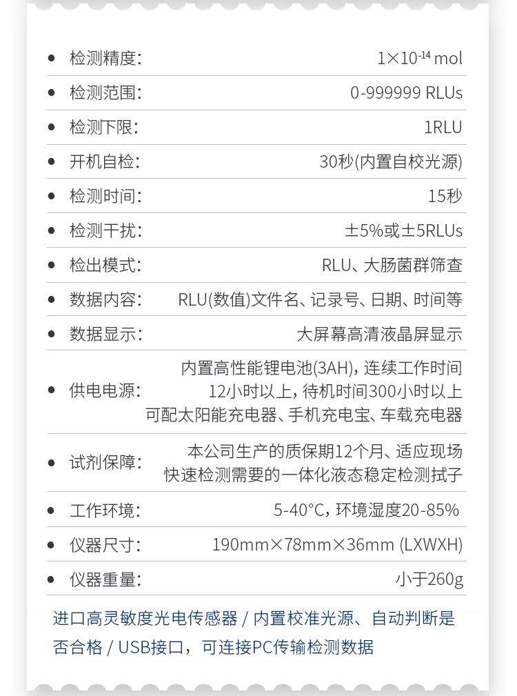 8、檢測(cè)干擾:±5﹪或±5 RLUs