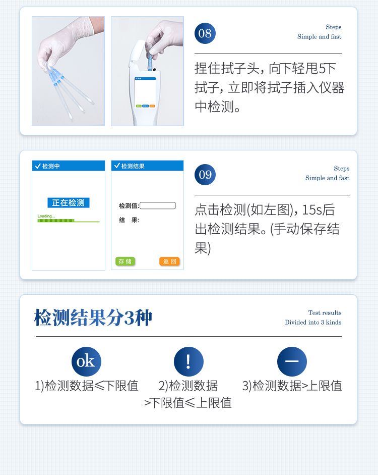 實(shí)用性 —— 可根據(jù)環(huán)境檢測(cè)需求設(shè)定上下限值,做到數(shù)據(jù)快速評(píng)估預(yù)警,表面潔凈度快速篩查。