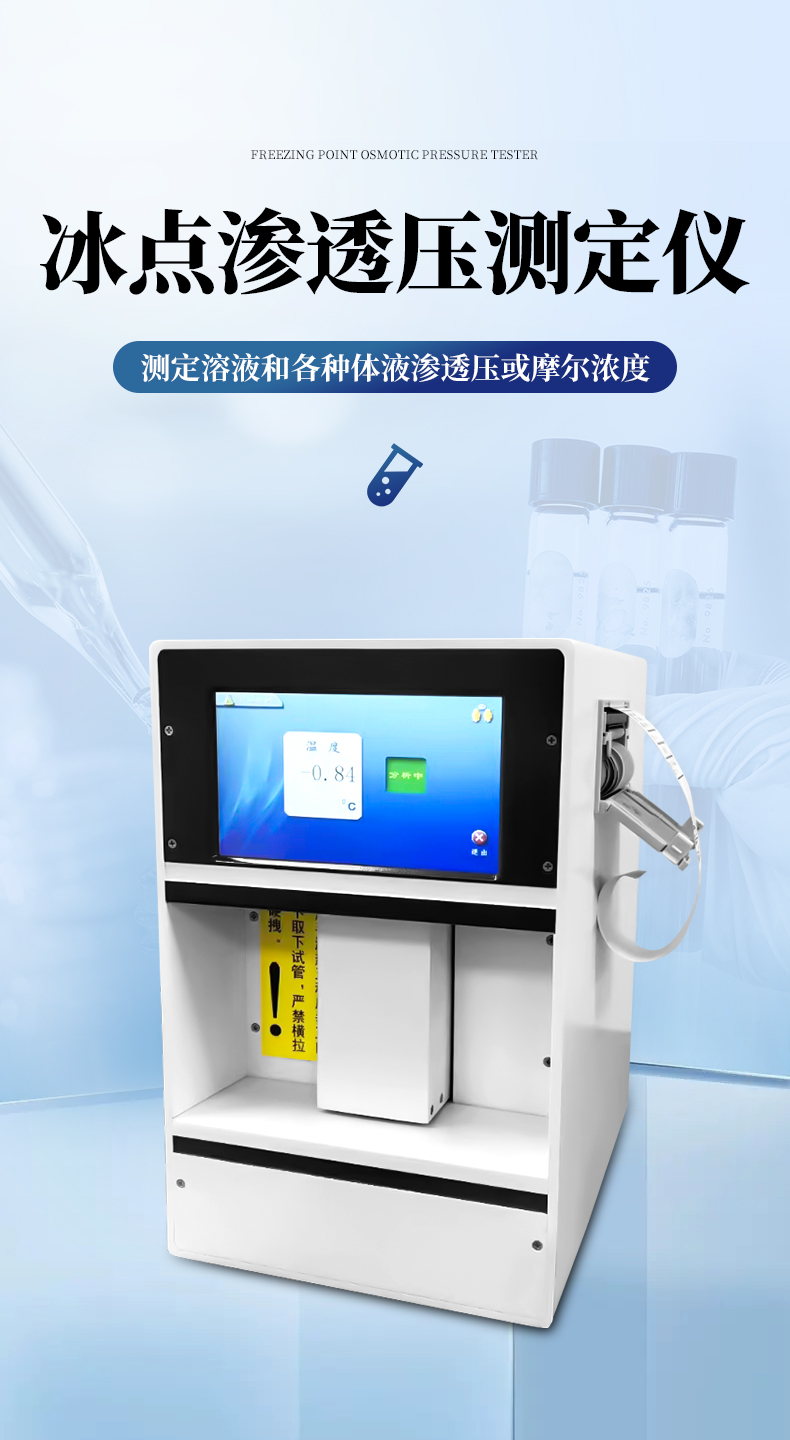 滲透壓測(cè)定儀是根據(jù)拉烏爾冰點(diǎn)理論,以溶液冰點(diǎn)下降值與溶液的摩爾濃度成比例關(guān)系為基礎(chǔ),采用高靈敏的感溫元件測(cè)量不同溶液的冰點(diǎn),進(jìn)而得出所測(cè)溶液的滲透壓摩爾濃度。廣泛應(yīng)用于制藥、藥物分析、生物、食品醫(yī)療等領(lǐng)域的滲透壓摩爾濃度的測(cè)試及研究。