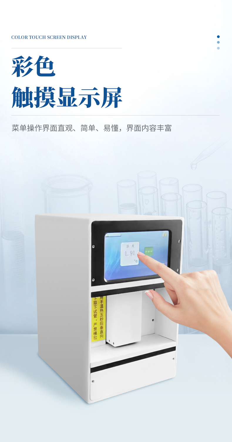 5.溫度探頭采用絲杠直線導(dǎo)軌電機(jī)設(shè)計(jì),只需在觸摸屏上操作即可完成整個(gè)測(cè)試過程。