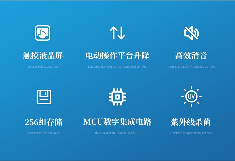 6.設(shè)備配置電動操作平臺升降、 LED 照明系統(tǒng)、紫外殺菌功能;