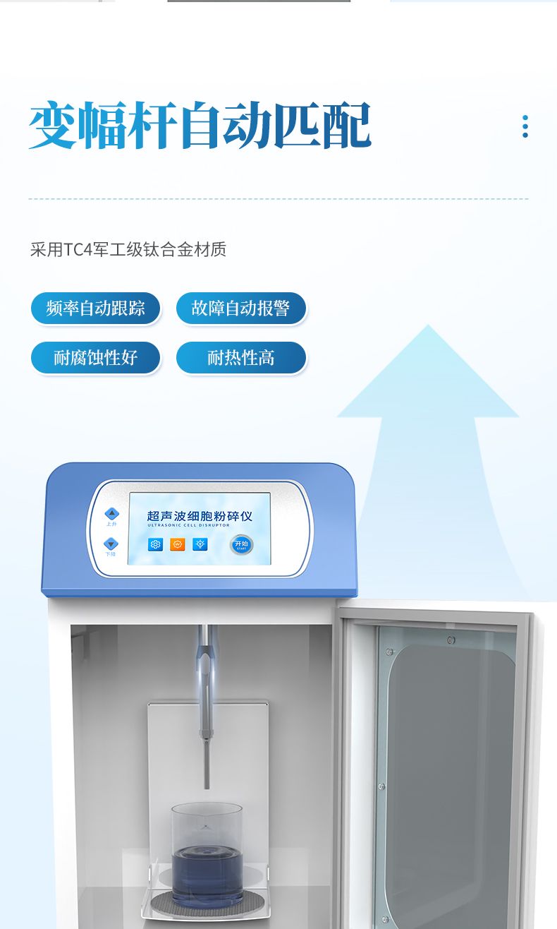 自研自產(chǎn)的超聲波細(xì)胞破碎儀,功能齊全、外觀新穎、性能可靠。儀器采用大屏液晶顯示;中央微機(jī)集中控制,超聲輸出、間隙時間、超聲功率,樣品溫度監(jiān)測顯示,頻率自動跟蹤,故障自動報警等功能。適用于生物化學(xué)、微生物學(xué)、藥物化學(xué)、表面化學(xué)、物理學(xué)、動物學(xué)、農(nóng)學(xué)、醫(yī)學(xué)、制藥等領(lǐng)域的教學(xué)、科研及生產(chǎn)。