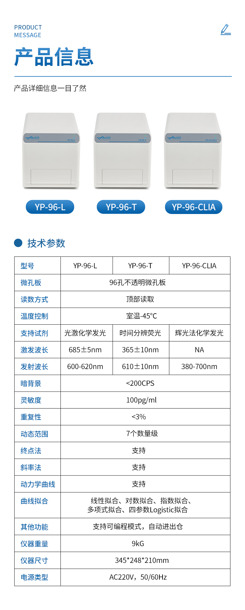 | 型號(hào) | YP-96-L | YP-96-T | YP-96-CLIA |