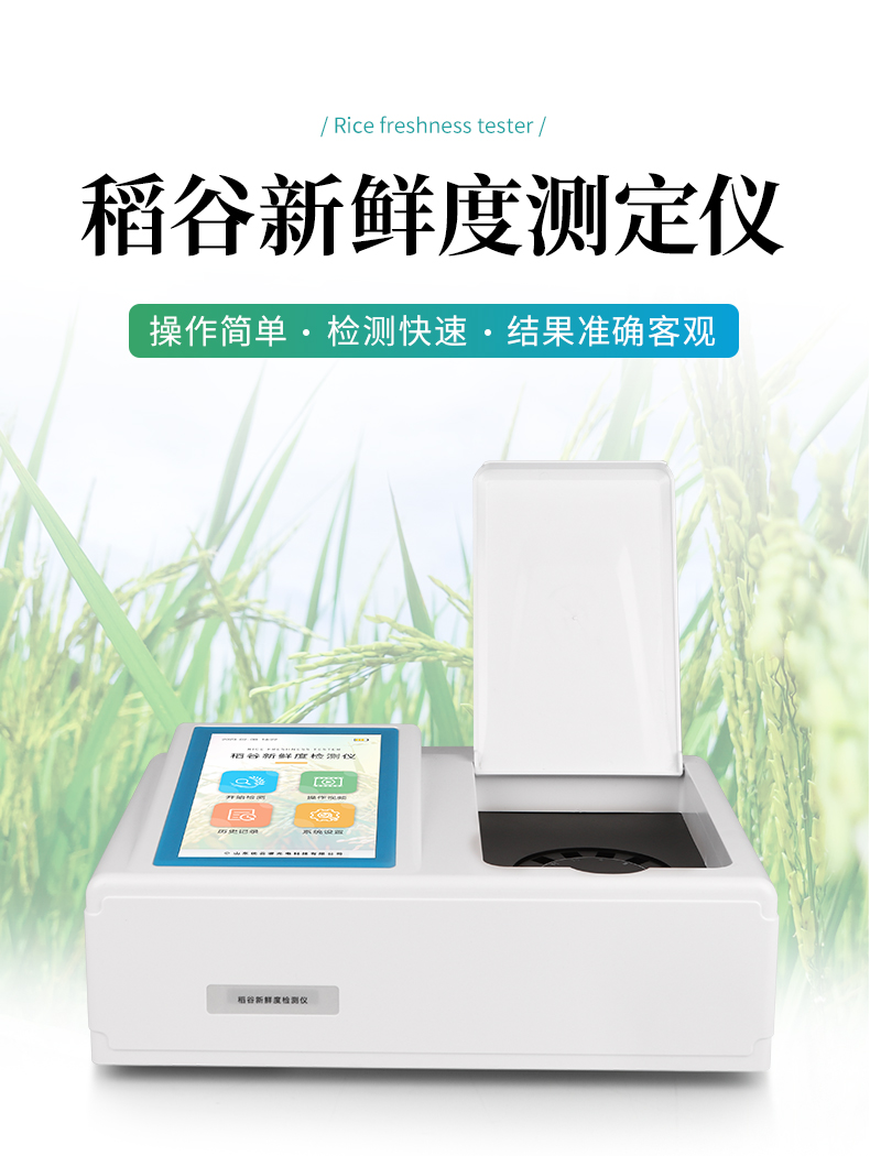 稻谷新鮮度測(cè)定儀適用于LS/T 6118—2017《糧油檢驗(yàn) 稻谷新鮮度測(cè)定與判別》糧食行業(yè)標(biāo)準(zhǔn),是檢測(cè)稻谷新鮮程度的一款專(zhuān)用儀器。其工作原理是依據(jù)稻谷樣品在陳化過(guò)程中產(chǎn)生的醛酮類(lèi)物質(zhì)的量,將待測(cè)稻谷碾制成大米,大米試樣加入專(zhuān)用試劑——測(cè)鮮劑后,振蕩混合并進(jìn)行離心處理,通過(guò)檢測(cè)樣品與測(cè)鮮劑混合反應(yīng)后混合溶液的顏色變化,經(jīng)儀器檢測(cè)后顯示樣品的新鮮度值來(lái)判斷該稻谷樣品的新鮮程度。該儀器主要應(yīng)用于糧庫(kù)、大米加工企業(yè)、糧食質(zhì)檢中心等對(duì)稻谷新鮮程度的評(píng)價(jià)。