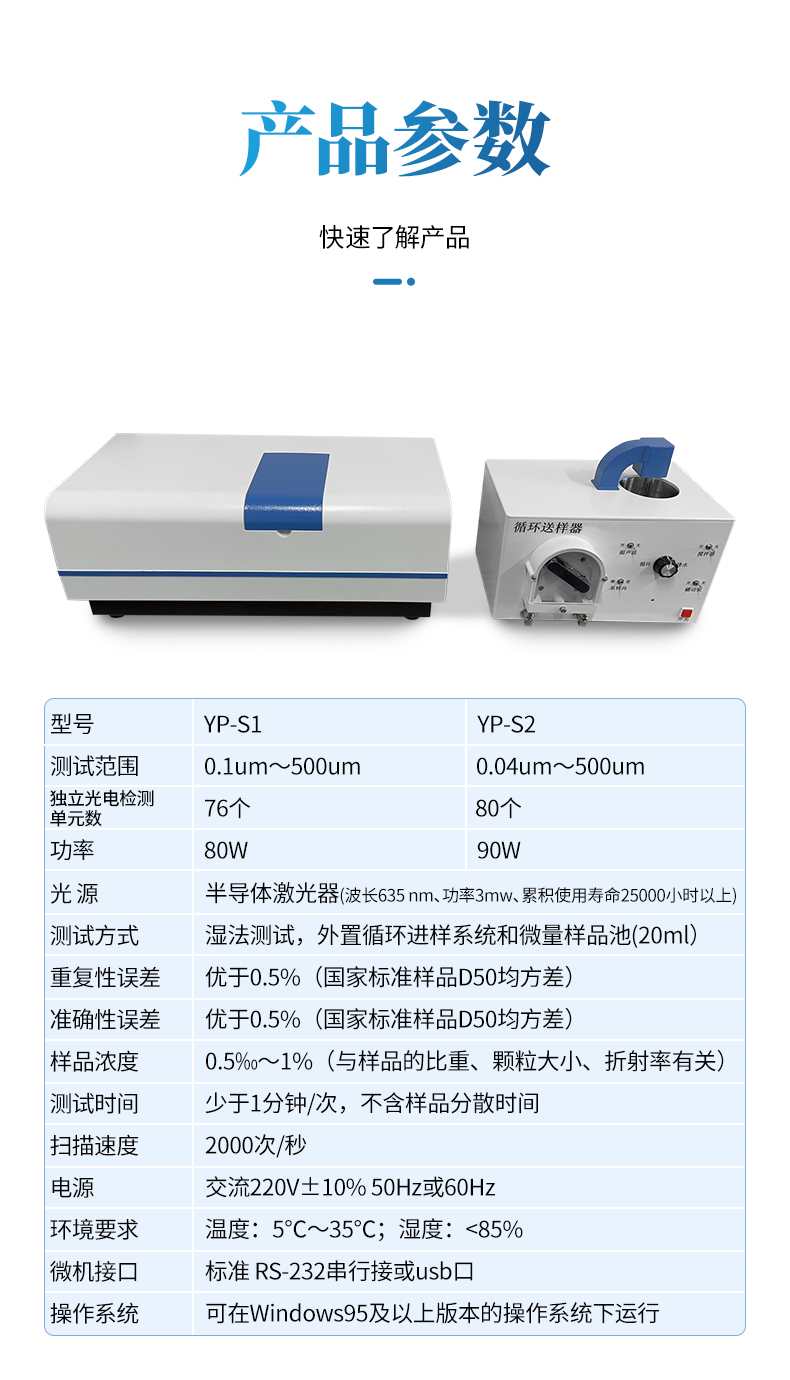 (3) 測(cè)試方式:濕法測(cè)試,外置循環(huán)進(jìn)樣系統(tǒng)和微量樣品池(20ml);