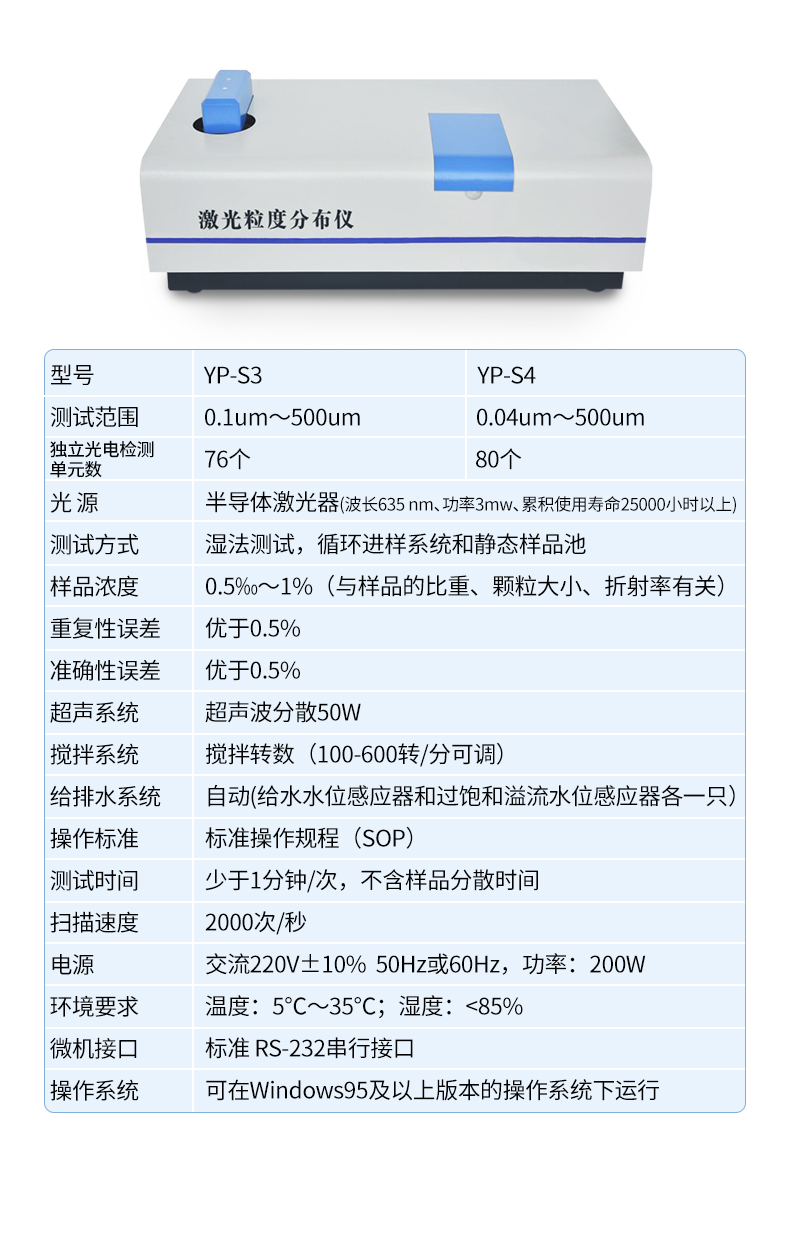 (1) 測(cè)試范圍:0.04微米~500微米;
