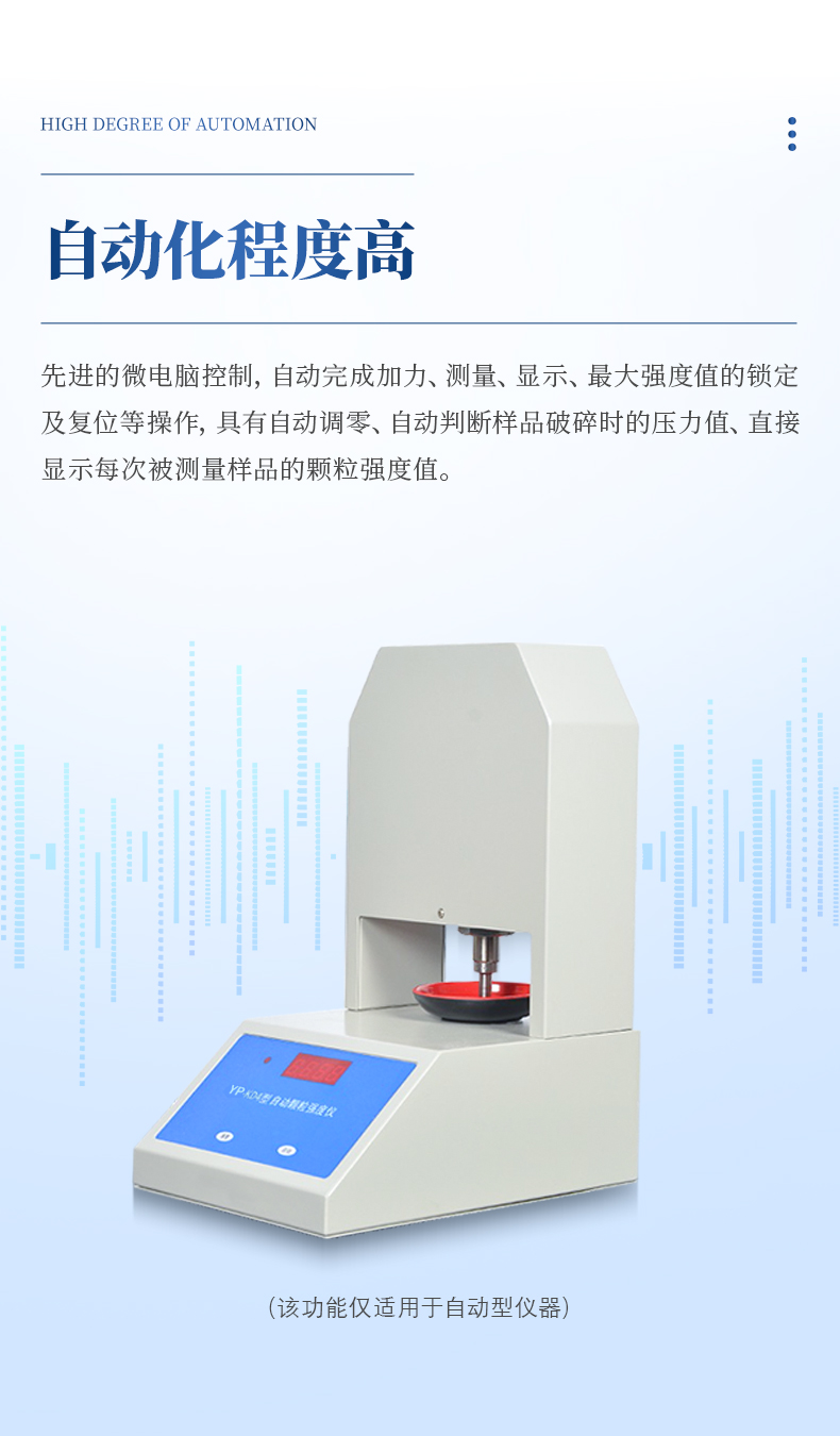 儀器采用先進(jìn)的微電腦控制,自動完成加力、測量、顯示、最大強(qiáng)度值的鎖定及復(fù)位等操作,具有自動調(diào)零、自動判斷樣品破碎時的壓力值、直接顯示每次被測量樣品的顆粒強(qiáng)度值。是催化劑、化肥、藥品、水果等顆粒樣品聚合強(qiáng)度測定最理想的新型試驗(yàn)儀器。