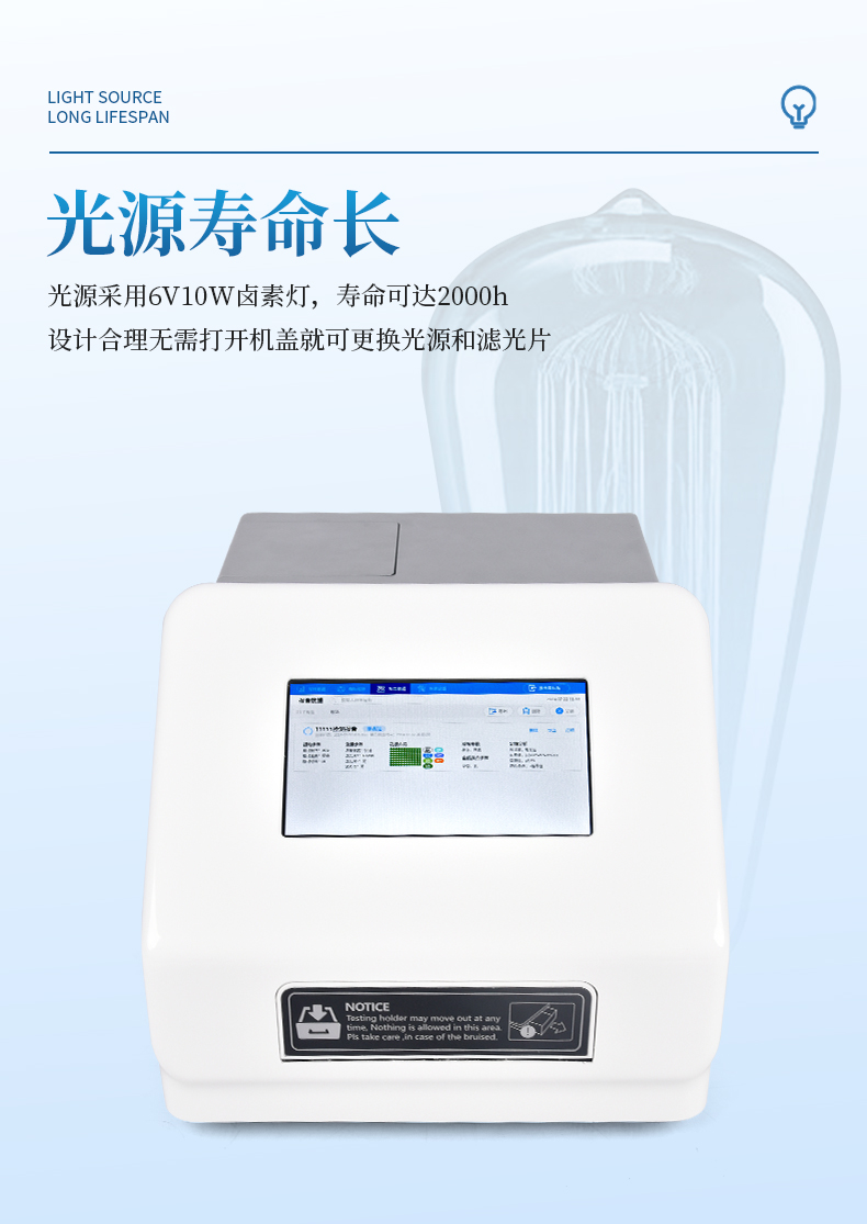 光源壽命長: 光源采用6V10W鹵素燈,壽命可達2000h;