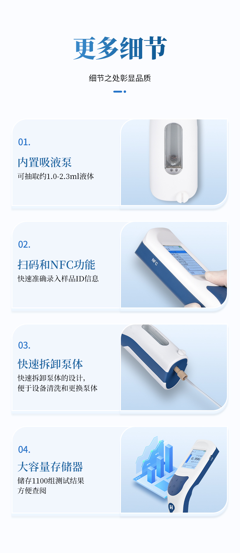 9、內(nèi)置吸液泵,可抽取約1.0-2.3ml液體。
