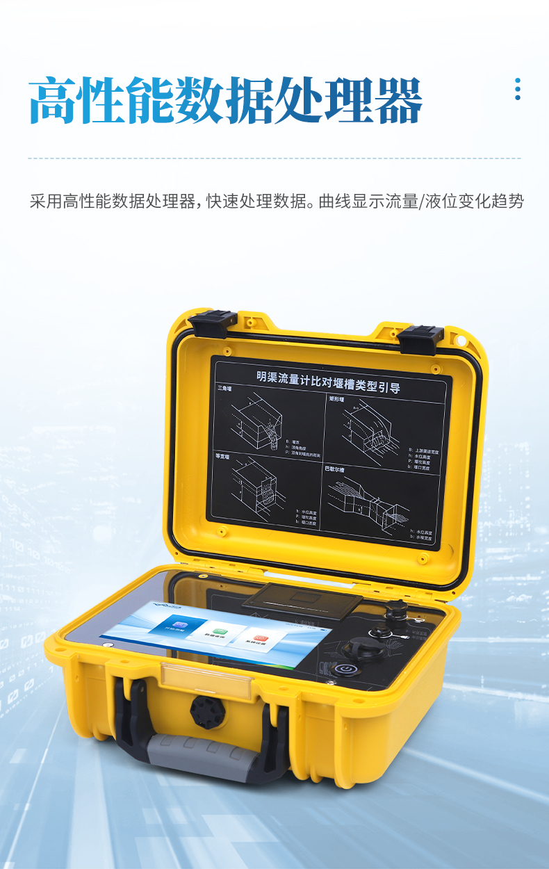 1、適用于三角堰、矩形堰、等寬堰和巴歇爾槽四種堰槽類型;