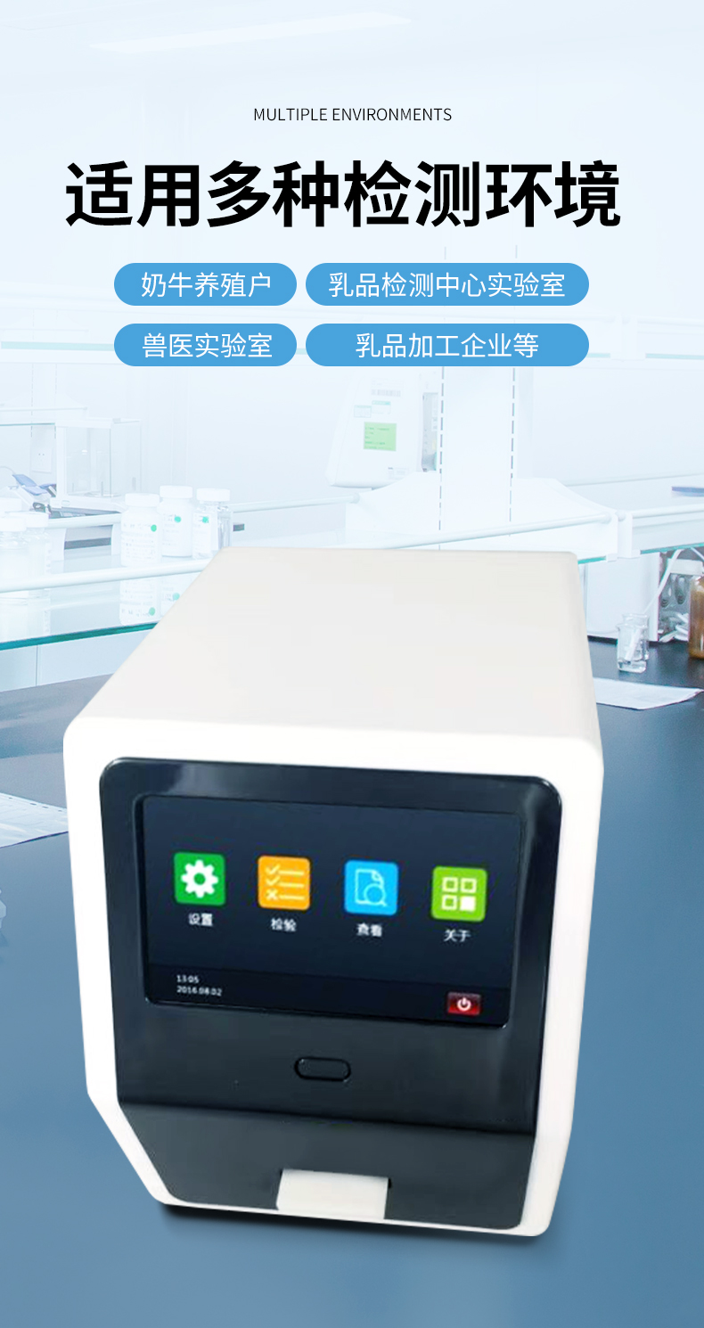 適用多種檢測環(huán)境:奶牛養(yǎng)殖戶,乳品加工企業(yè),乳品檢測中心實驗室和獸醫(yī)實驗室等多種環(huán)境。