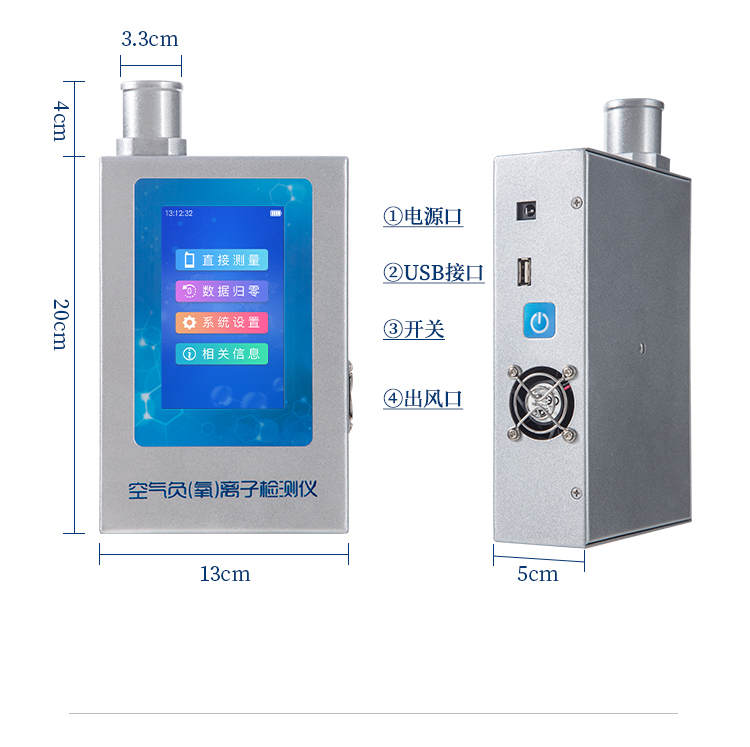 1、屏幕顯示:5.0英寸電容觸摸屏,800*480高分辨率,實(shí)時顯示負(fù)(氧)離子測量結(jié)果;