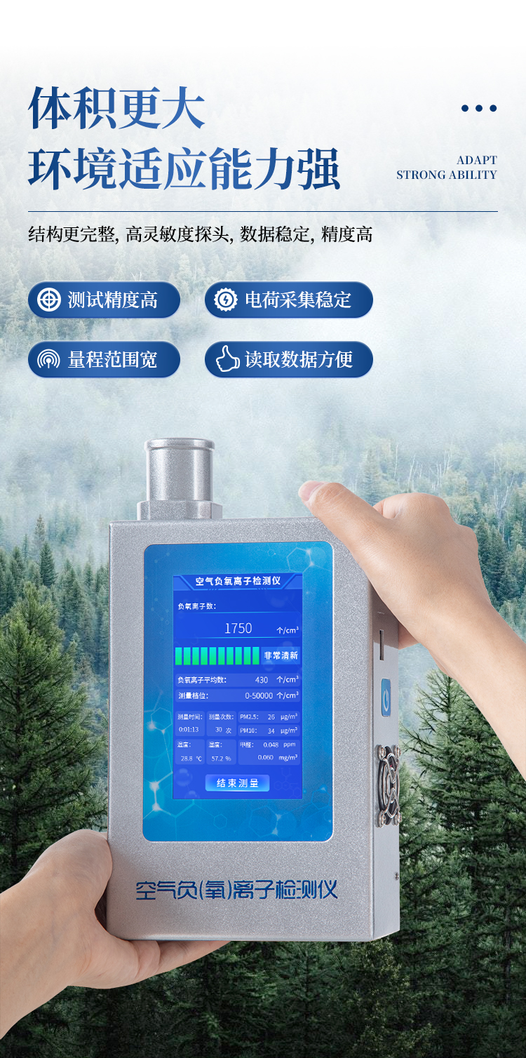 實時測量空氣中的大氣負氧離子濃度、甲醛濃度、pm2.5、pm10,是環(huán)境監(jiān)測、納米涂料、負離子保健產(chǎn)品、負離子家裝建材、室內(nèi)檢測、空氣治理、空氣凈化器及其制品負離子濃度的測量與演示的優(yōu)選工具。