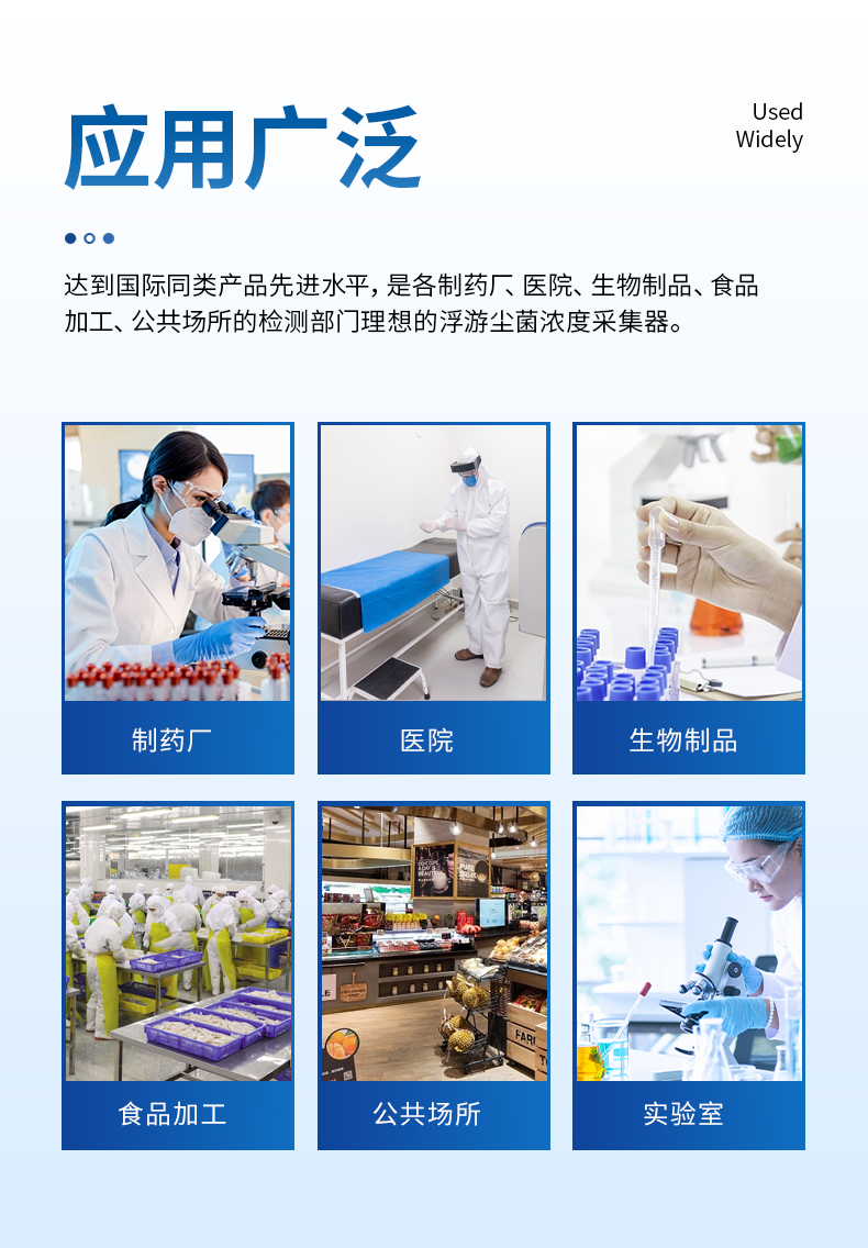 本儀器結(jié)構(gòu)獨(dú)特新穎,分上下兩部分,上部分采集口和采樣座及氣泵,下部分控制器及電池。采樣口和外殼采用優(yōu)質(zhì)航空鋁制造,表面閉孔處理,便于使用前的滅菌消毒。本儀器功能強(qiáng)大,采樣量大,收集效率高,性能穩(wěn)定,操作簡(jiǎn)便,達(dá)到國際同類產(chǎn)品先進(jìn)水平,是各制藥廠、醫(yī)院、生物制品、食品加工、公共場(chǎng)所的檢測(cè)部門理想的浮游塵菌濃度采集器。