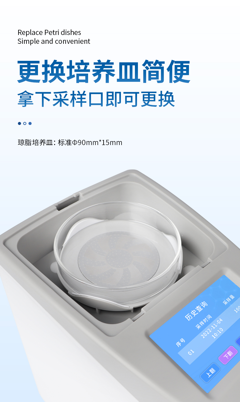● 更換培養(yǎng)皿簡(jiǎn)便,拿下采樣口即可更換培養(yǎng)皿。