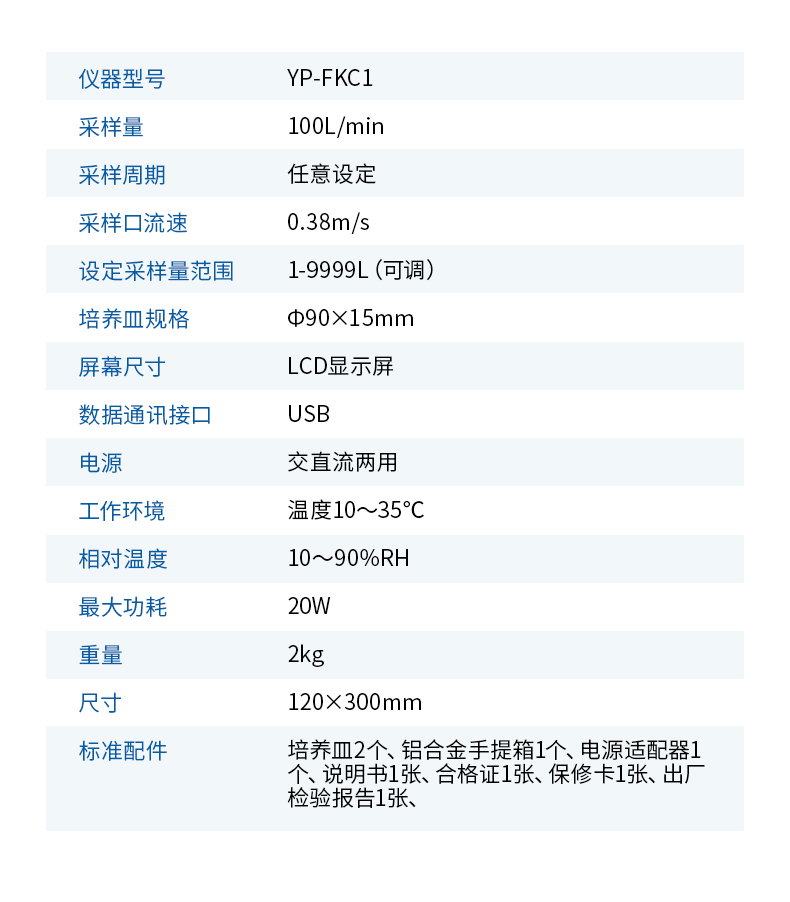 標(biāo)準(zhǔn)配件:采樣蓋1個(gè),培養(yǎng)皿2個(gè),防塵罩1個(gè),熱敏打印紙1卷,電源適配器,說明書,合格證