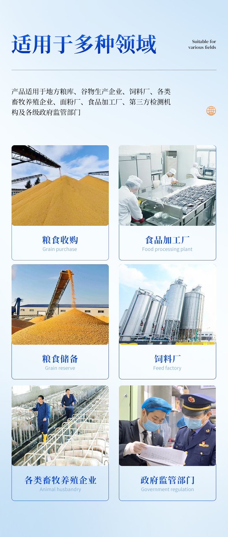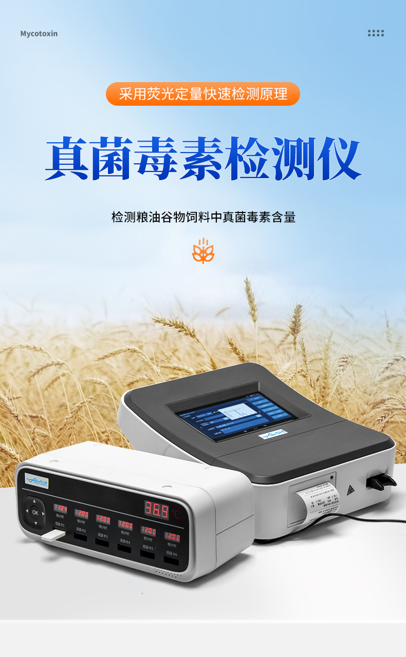YP-L02型真菌毒素快速檢測(cè)儀采用熒光定量快速檢測(cè)原理,主要檢測(cè)糧油谷物飼料中真菌毒素含量,包括黃曲霉毒素B1、黃曲霉毒素M1、玉米赤霉烯酮、嘔吐毒素、伏馬毒素等等,檢測(cè)樣品涵蓋糧食谷物(大米、玉米、小麥、大麥、高粱等)及其制品、飼料及其原料、食用油脂、牛奶及其制品等;樣品前處理簡(jiǎn)單,整個(gè)檢測(cè)過程檢測(cè)12min,產(chǎn)品適用于地方糧庫(kù)、谷物生產(chǎn)企業(yè)、飼料廠、各類畜牧養(yǎng)殖企業(yè)、面粉廠、食品加工廠、第三方檢測(cè)機(jī)構(gòu)及各級(jí)政府監(jiān)管部門。