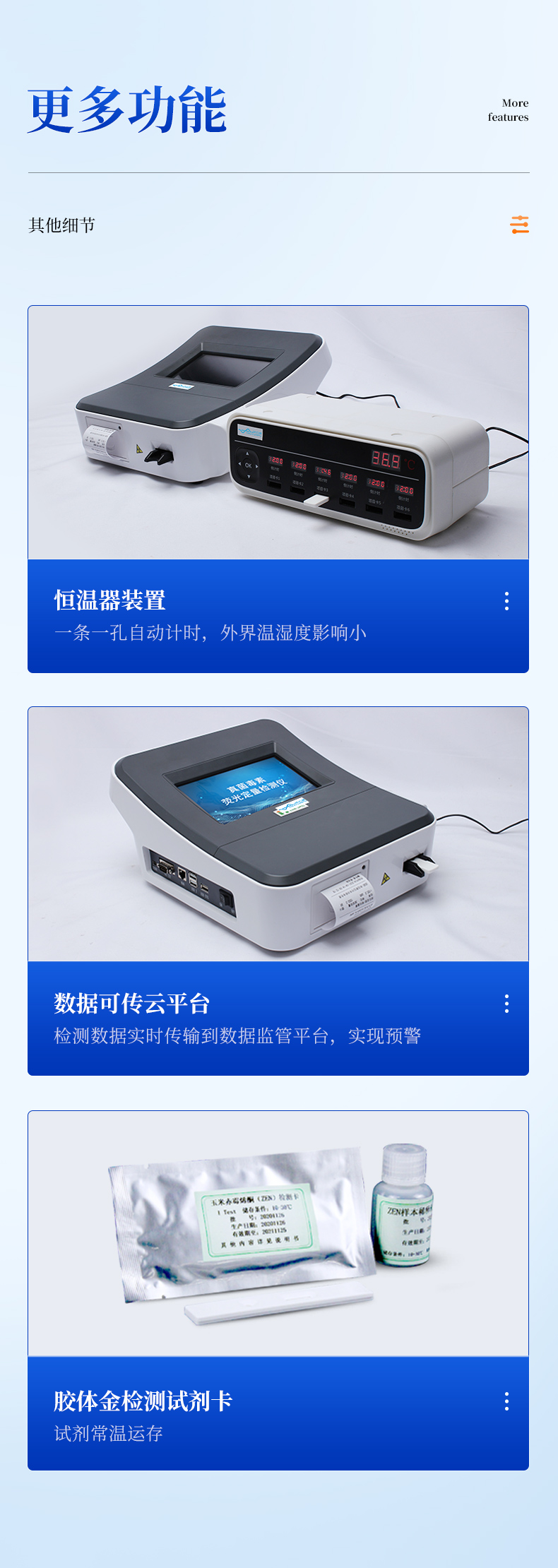 (1)適用于定量膠體金試紙卡和反應(yīng)液體精確控溫反應(yīng),以提高準(zhǔn)確性;
