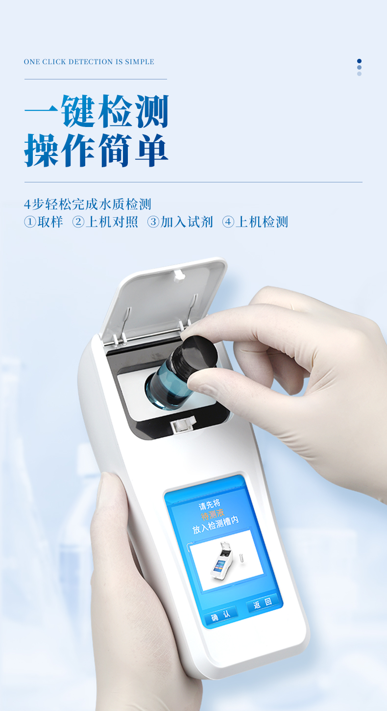 色度檢測儀配合快速顯色檢測試劑,可“快速、簡單、準(zhǔn)確、穩(wěn)定”進(jìn)行水中色度指標(biāo)的測量,該儀器擁有精美的外觀造型,簡單的操作界面,準(zhǔn)確的檢測系統(tǒng),幫助用戶獲得精細(xì)的數(shù)據(jù),可更準(zhǔn)確、有效的分析水體狀況,提前預(yù)防,及時避免損失。