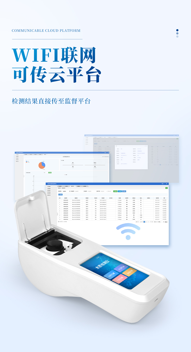 ②配置云監(jiān)控平臺,檢測結(jié)果可直接無線傳至平臺,進(jìn)行水質(zhì)長短期分析,輔助管理。