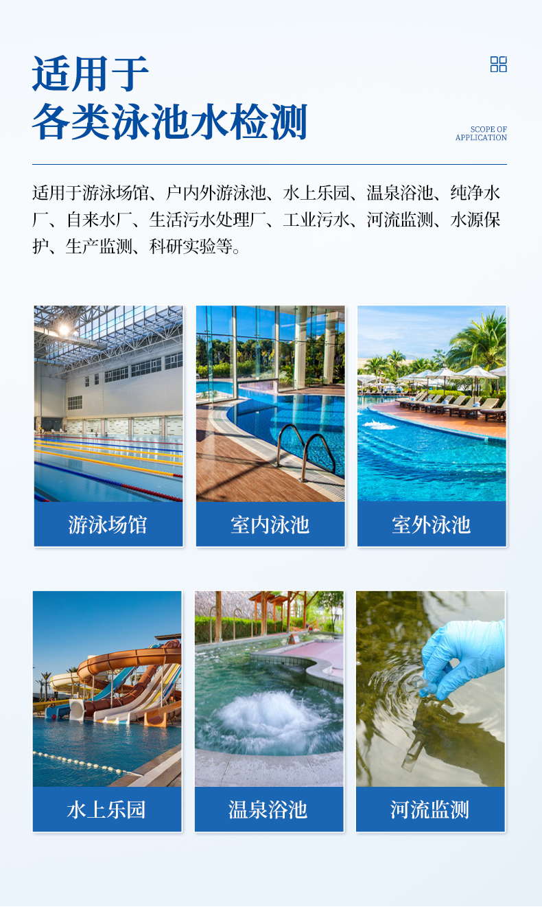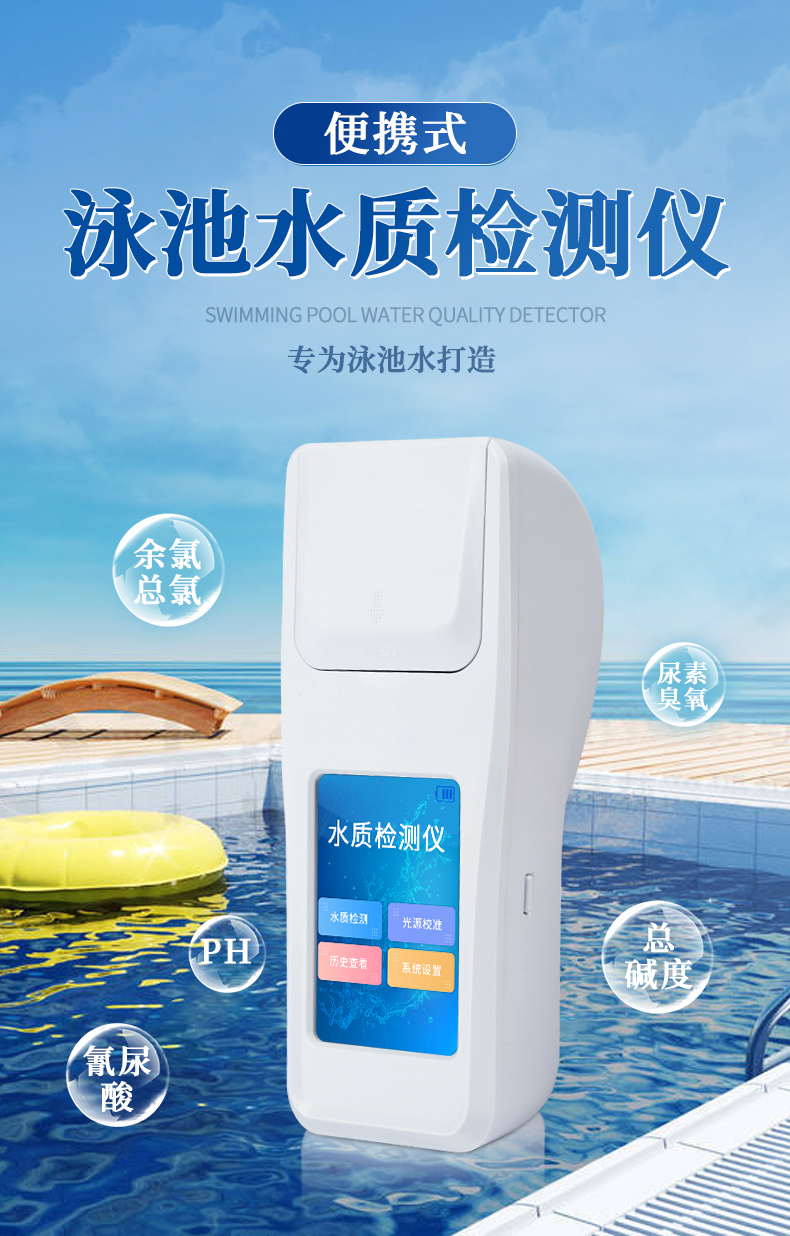 泳池水質(zhì)檢測(cè)儀是一款適用于游泳場(chǎng)館、戶內(nèi)外游泳池、水上樂園、溫泉浴池等領(lǐng)域的檢測(cè)儀,配合快速顯色檢測(cè)試劑,可“快速、簡(jiǎn)單、準(zhǔn)確、穩(wěn)定”進(jìn)行測(cè)量,擁有精美的外觀造型,簡(jiǎn)單的操作界面,準(zhǔn)確的檢測(cè)系統(tǒng),幫助用戶獲得精細(xì)的數(shù)據(jù),可更準(zhǔn)確、有效的分析水體狀況。
