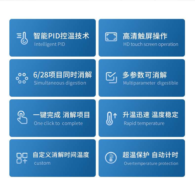 特色功能:一鍵消解、超溫保護、蜂鳴提示、自定義設(shè)置、倒計時功能;