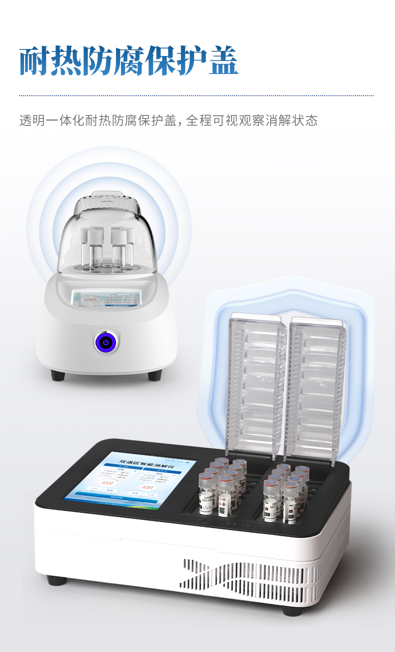 7、透明一體化耐熱防腐保護(hù)蓋,全程可視觀察消解狀態(tài);