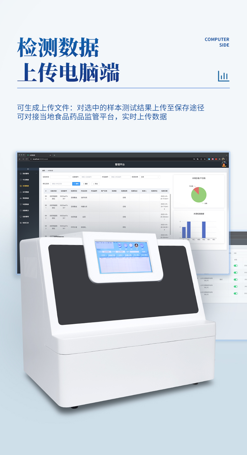 軟件:可生成上傳文件:對選中的樣本測試結(jié)果上傳至保存途徑??蓪赢?dāng)?shù)厥称匪幤繁O(jiān)管平臺,實時上傳數(shù)據(jù)。