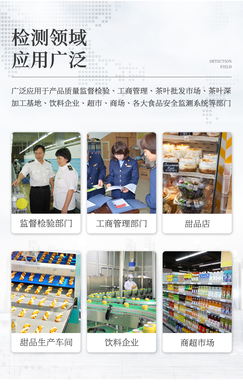 安賽蜜含量檢測儀能夠快速檢測蜜餞、果醬、糖果、面包糕點、飲料等中的安賽蜜含量。廣泛應用于各檢測單位等使用。