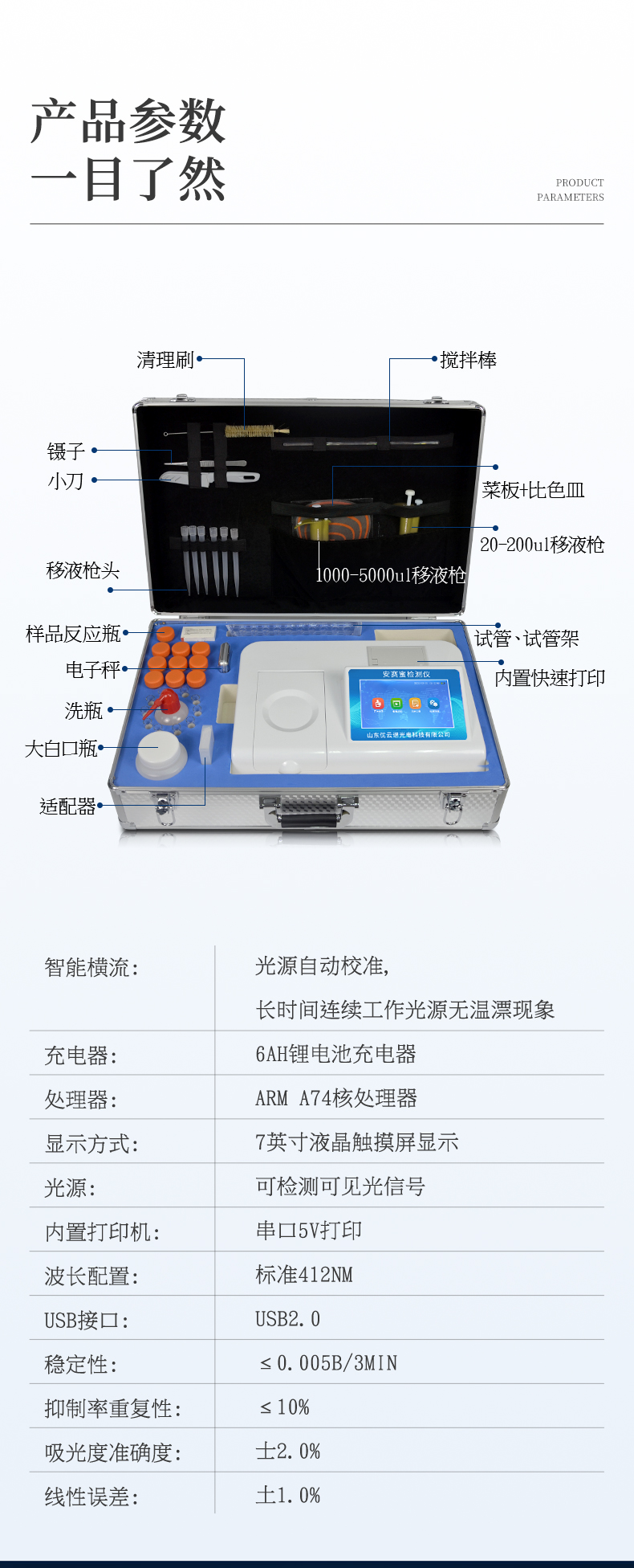 5、智能恒流穩(wěn)壓,光強自動校準,長時間連續(xù)工作光源無溫漂現(xiàn)象。。