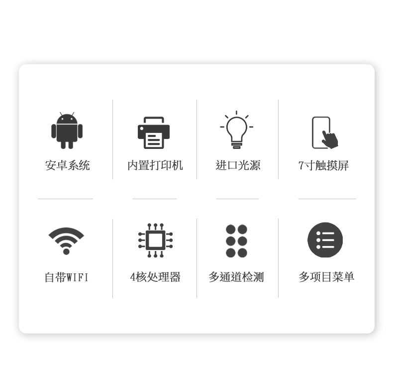 3、四波長冷光源,每個通道均配置410、520、590、630nm波長光源,標配先進的光路切換裝置,專利光路切換功能可實現(xiàn)最多64波長,并且所有檢測項目可實現(xiàn)所有通道同時檢測。