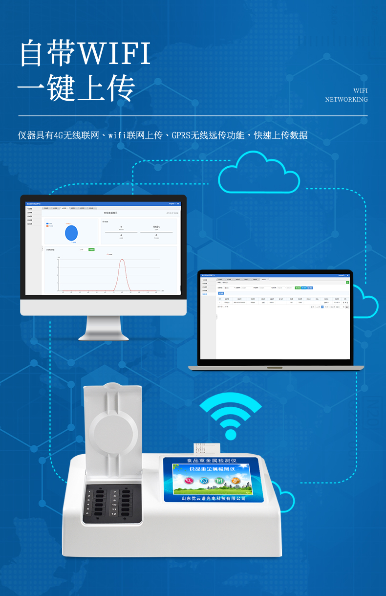 3、儀器具有4G無(wú)線聯(lián)網(wǎng)、wifi聯(lián)網(wǎng)上傳、GPRS無(wú)線遠(yuǎn)傳功能,快速上傳數(shù)據(jù)。