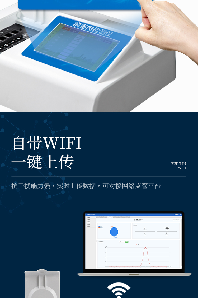 8、儀器帶有監(jiān)管平臺。數(shù)據(jù)可局域網(wǎng)和互聯(lián)網(wǎng)數(shù)據(jù)上傳,檢測結(jié)果直接傳至食品安全監(jiān)管平臺。進行區(qū)域食品安全監(jiān)管及大數(shù)據(jù)分析處理,檢測區(qū)域食品安全長短期動態(tài),達到食品安全問題預(yù)估、預(yù)警