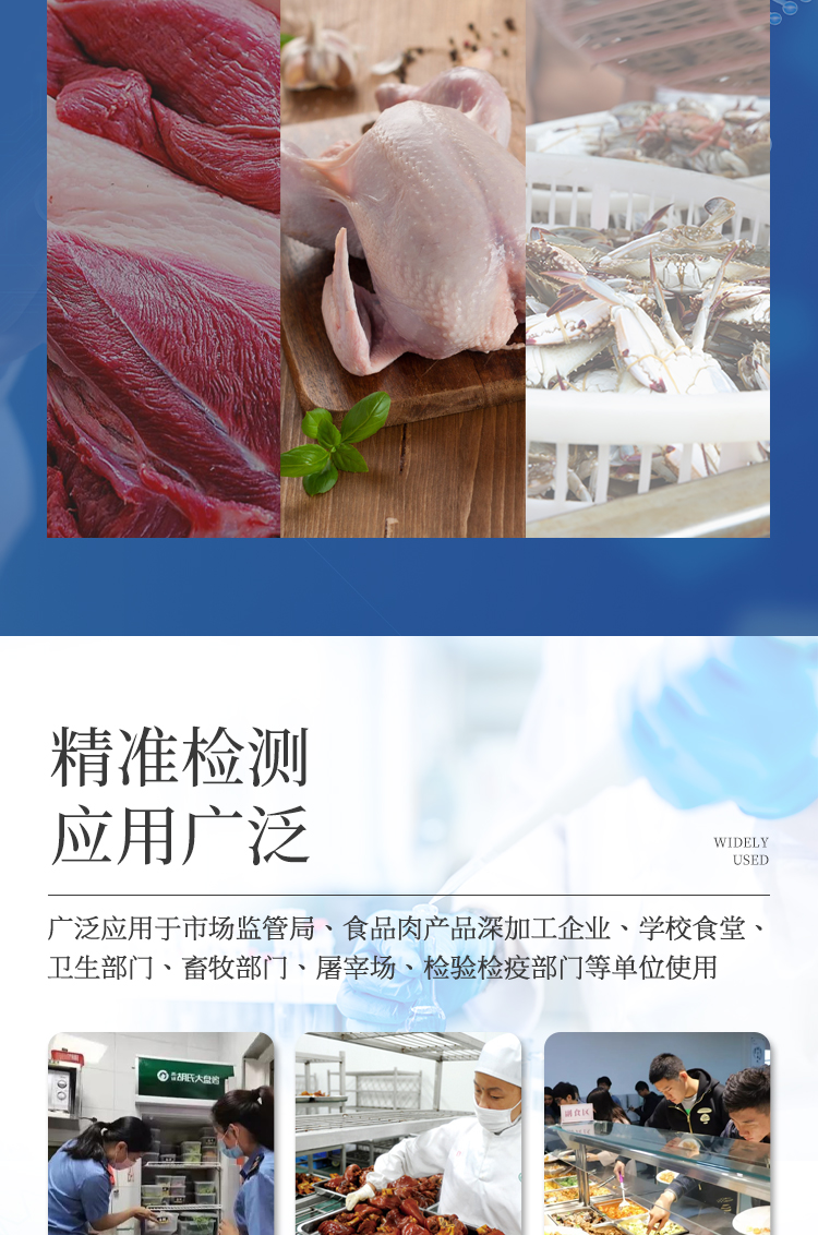 該多功能食品安全檢測儀為集成一體化食品安全快速檢測分析設(shè)備,廣泛應(yīng)用于市場監(jiān)管局、食品肉產(chǎn)品深加工企業(yè)、學(xué)校食堂、衛(wèi)生部門、畜牧部門、屠宰場、檢驗檢疫部門等單位使用。