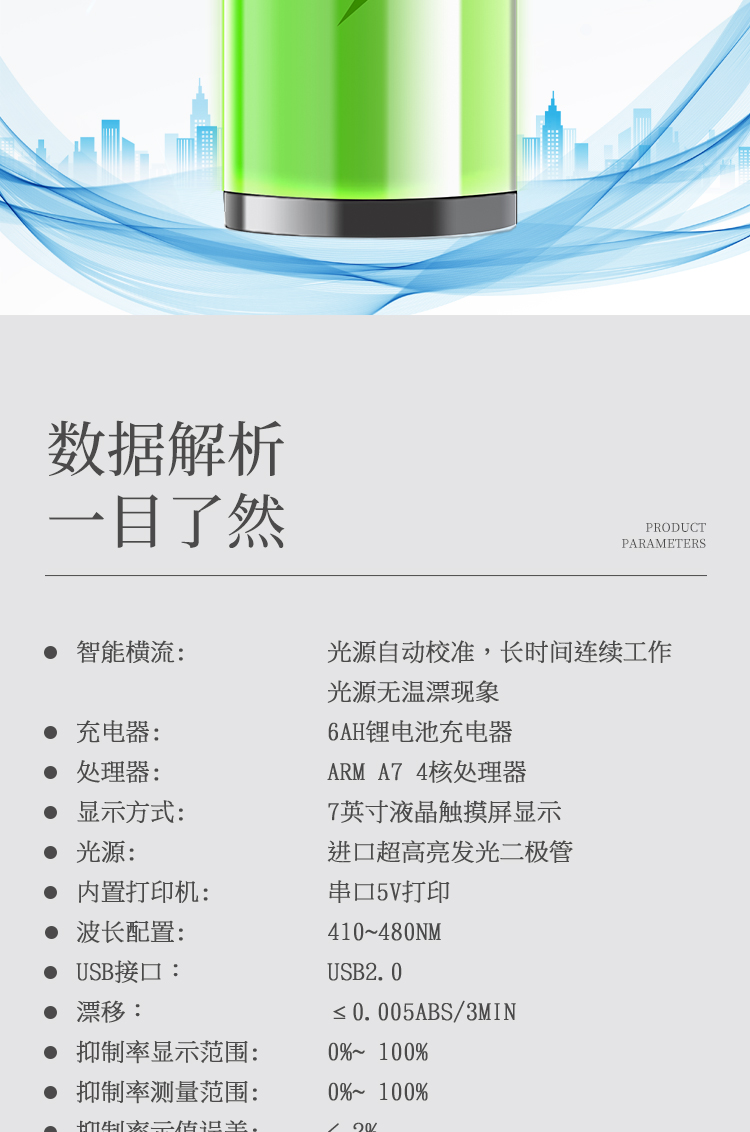 5、智能恒流穩(wěn)壓,光強自動校準(zhǔn),長時間連續(xù)工作光源無溫漂現(xiàn)象。