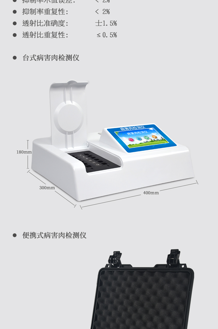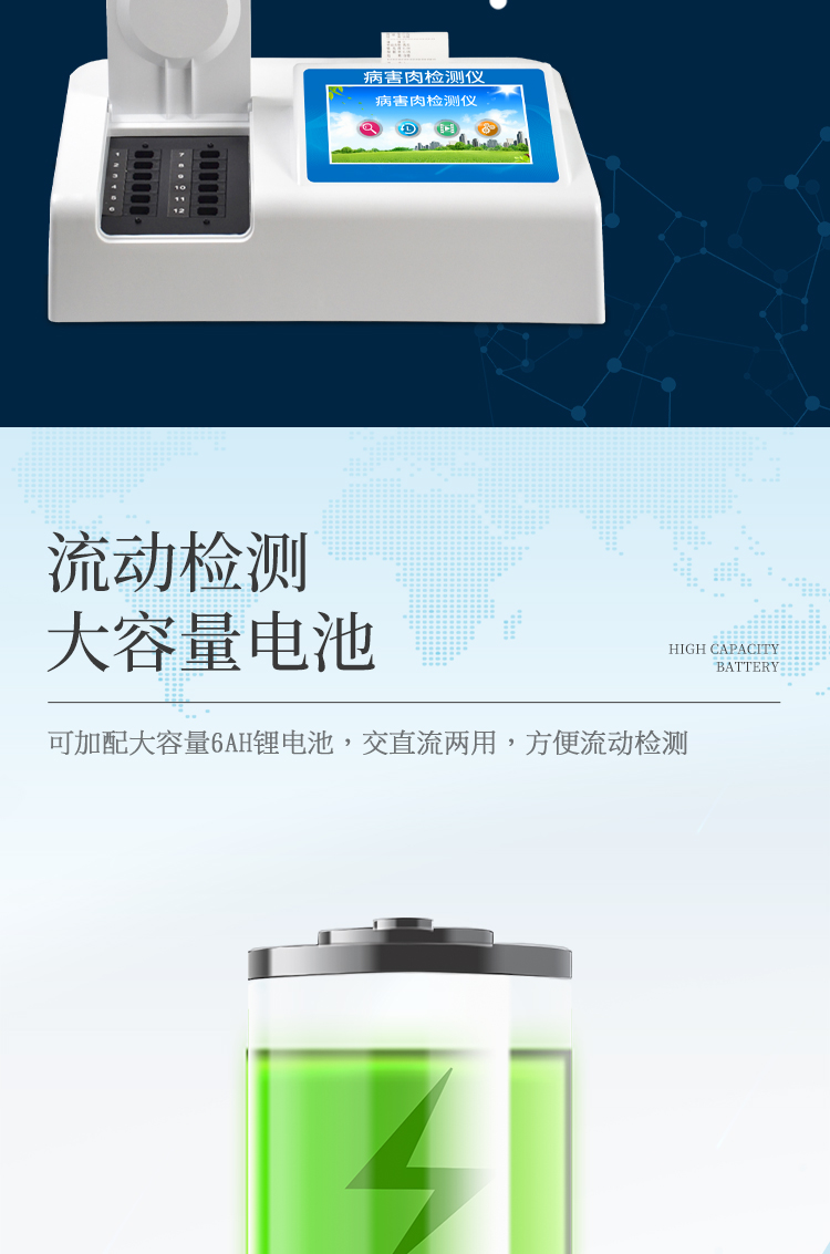 可快速檢測病害肉、組胺、揮發(fā)性鹽基氮,儀器預(yù)留其他項目檢測程序和端口,根據(jù)日后需求可方便的自主增加檢測項目。