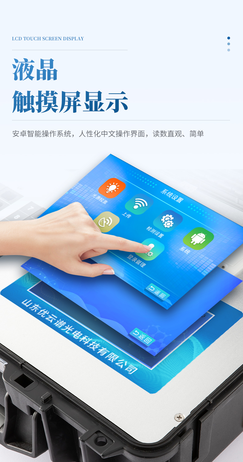 2、顯示方式:7英寸液晶觸摸屏顯示,人性化中文操作界面,讀數(shù)直觀、簡單。