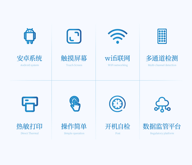 1、安卓智能操作系統(tǒng),采用更加高效的UI交互界面,儀器具有wifi聯(lián)網(wǎng)上傳、4G聯(lián)網(wǎng)傳輸、GPRS無線遠傳、網(wǎng)線連接功能,快速批量上傳數(shù)據(jù)。