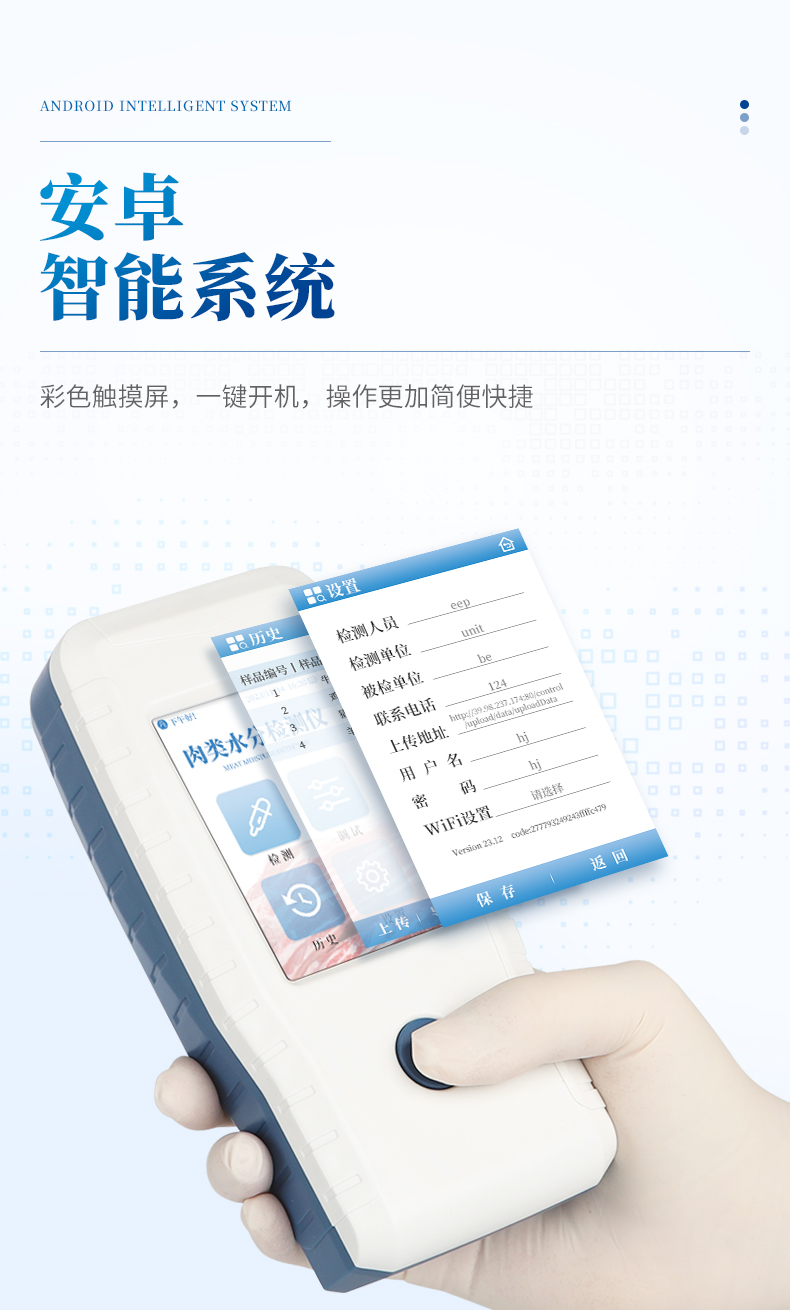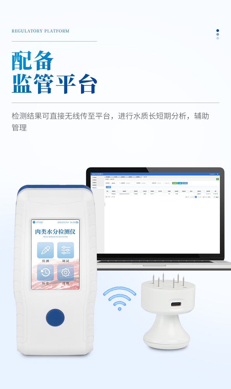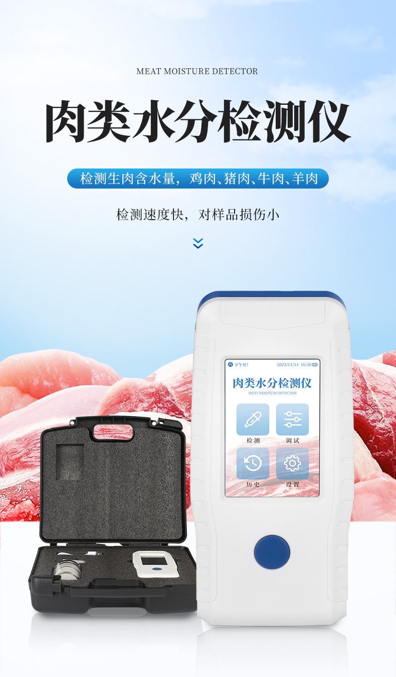 肉類含水量測(cè)定儀通過向樣品注入高頻電信號(hào)并接收回波測(cè)量生肉含水量,相比GB18394-2020國標(biāo)文件中的5.2節(jié)紅外線干燥法(快速法)更快速便捷,具有不需要制備樣品,檢測(cè)迅速,操作方便的優(yōu)點(diǎn)。