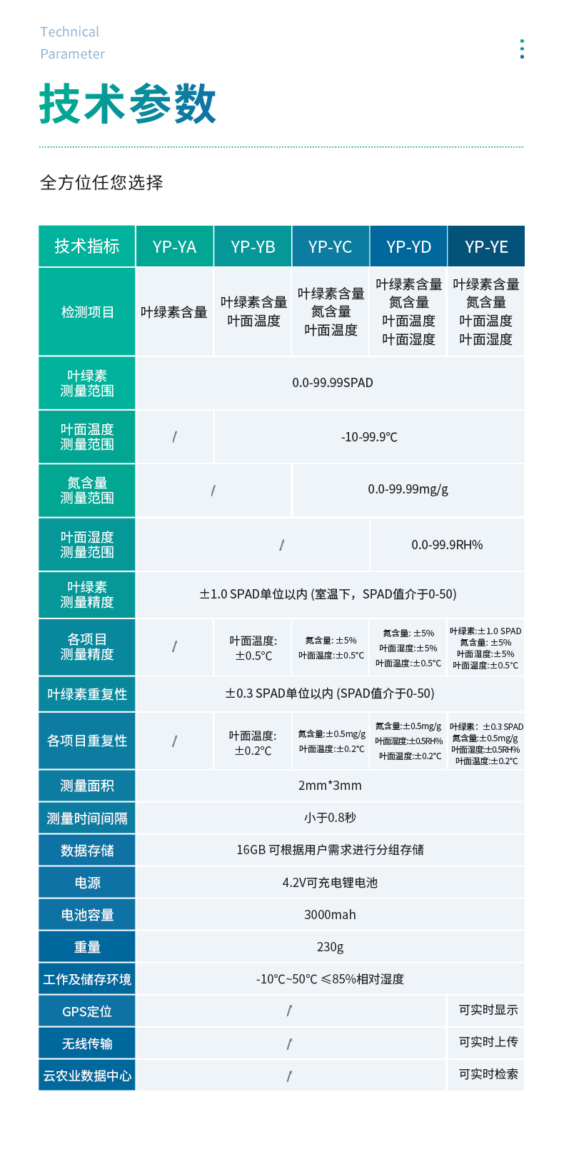 氮含量: ±5% 葉面濕度:±5% 葉面溫度:±0.5℃