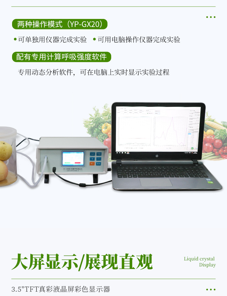 3、專用動態(tài)分析軟件,可在電腦上實時顯示實驗過程,并可輸入試驗果品或蔬菜的種類、名稱、重量、產(chǎn)地、采摘日期等要素。