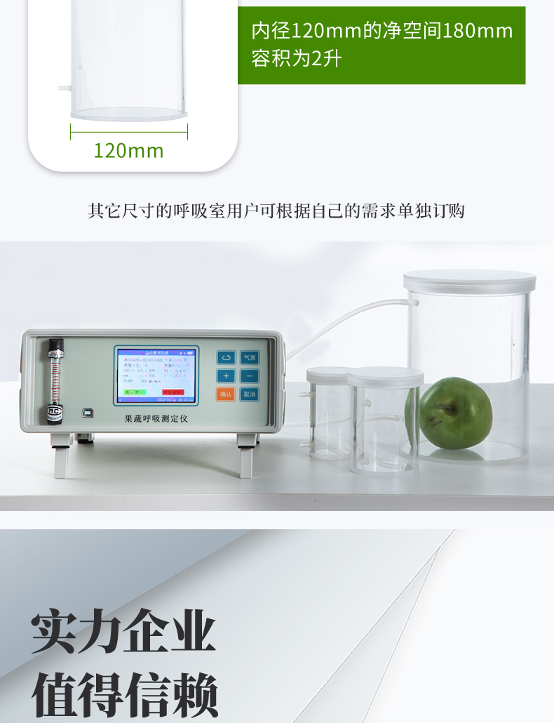 YP-GX20新型果蔬呼吸儀采用雙波長紅外二氧化碳分析器,3.5寸TFT 真彩液晶顯示器,專門用于常溫、冷藏庫、氣調(diào)庫、超市冷柜等儲藏條件下的果品和蔬菜呼吸強度的測定和分析研究。該儀器的特點是可以根據(jù)果蔬的大小來選擇不同體積的呼吸室,加快了平衡和測定時間;可以通過電腦直接操作儀器,同時顯示呼吸室的CO2濃度、O2濃度、溫度和濕度及變化曲線。