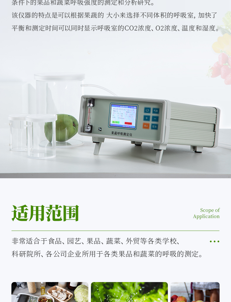 4、氣體流量通過儀器或電腦設(shè)定。可以進(jìn)行不同流量下果蔬呼吸強度的試驗。