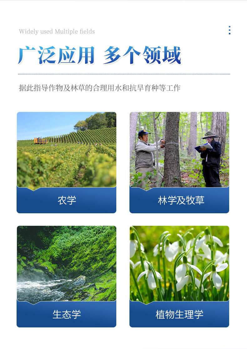 植物水勢測定儀,是用于測定植物水分狀況和它的組成成分及壓去木質(zhì)部位導(dǎo)管汁液提供成分分析用的一種分析儀器??梢岳么藘x器研究植物的水分關(guān)系和植物與環(huán)境的關(guān)系。植物水勢測定儀適用于植物生理學(xué)、生態(tài)學(xué)、農(nóng)學(xué)、林學(xué)及牧草等的研究。據(jù)此指導(dǎo)作物及林草的合理用水和抗旱育種等工作,是從事農(nóng)林教學(xué)和科研工作的重要儀器。該儀器操作簡便,檢測快速,同時適用于室內(nèi)和室外及野外測量。