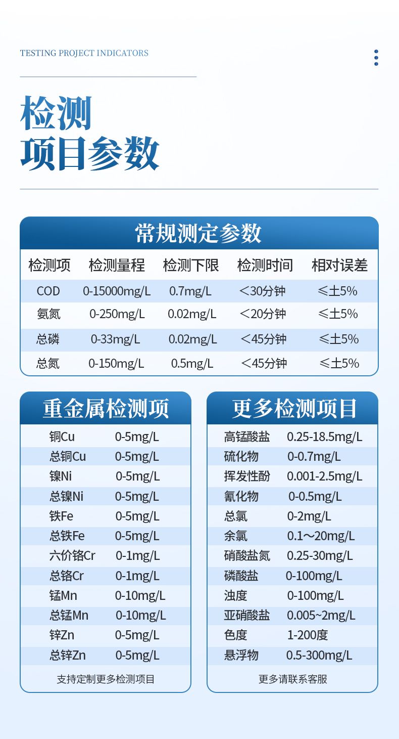 檢測(cè)方法:水質(zhì)化學(xué)需氧量快速檢測(cè)法;