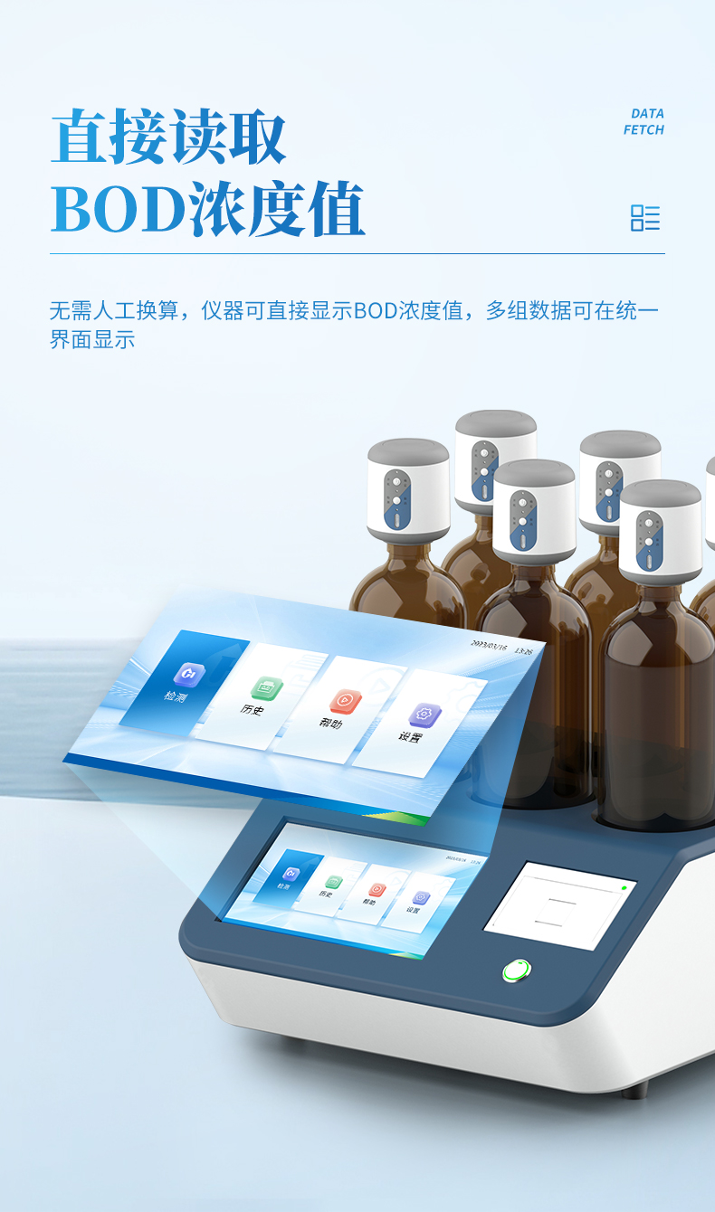 5、無(wú)需人工換算,儀器可直接顯示BOD濃度值,多組數(shù)據(jù)可在統(tǒng)一界面顯示;