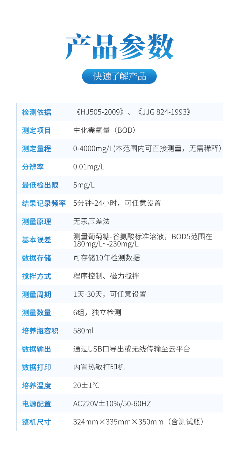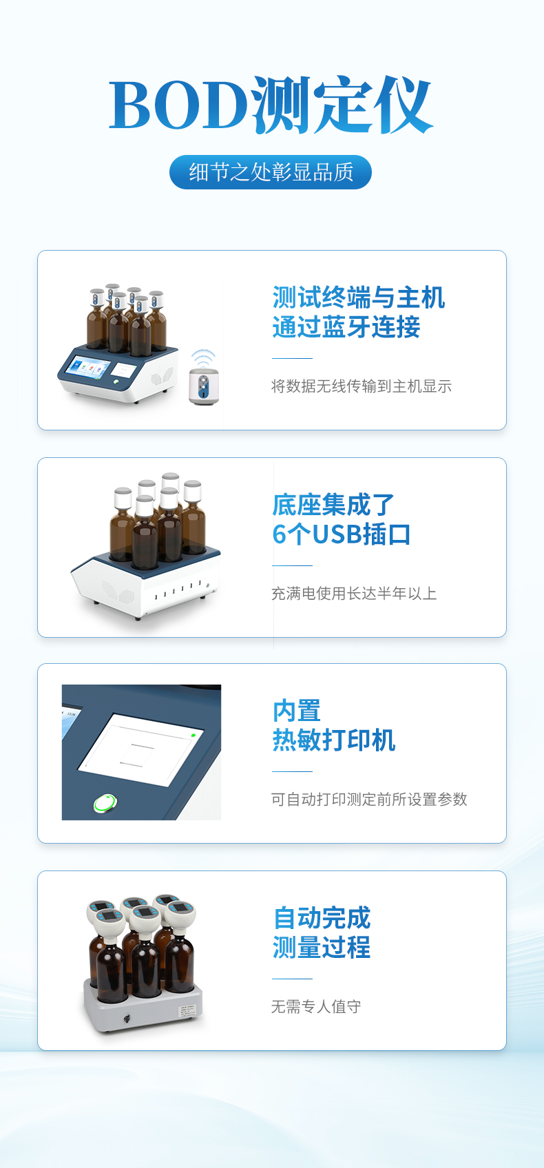 生化需氧量(BOD)測(cè)定儀是根據(jù)國(guó)家標(biāo)準(zhǔn)《HJ505-2009》5日培養(yǎng)法,模擬自然界中有機(jī)物的生物降解過(guò)程,采用簡(jiǎn)單、安全、可靠的無(wú)汞壓差感測(cè)法測(cè)量水中BOD濃度;全智能化設(shè)計(jì),領(lǐng)先的研發(fā)工藝和設(shè)計(jì)制造,實(shí)驗(yàn)過(guò)程無(wú)需實(shí)驗(yàn)人員值守;適用于排污企業(yè)、環(huán)境監(jiān)測(cè)、污水處理廠、第三方檢測(cè)機(jī)構(gòu)、科研、高校等領(lǐng)域的生化需氧量測(cè)定。