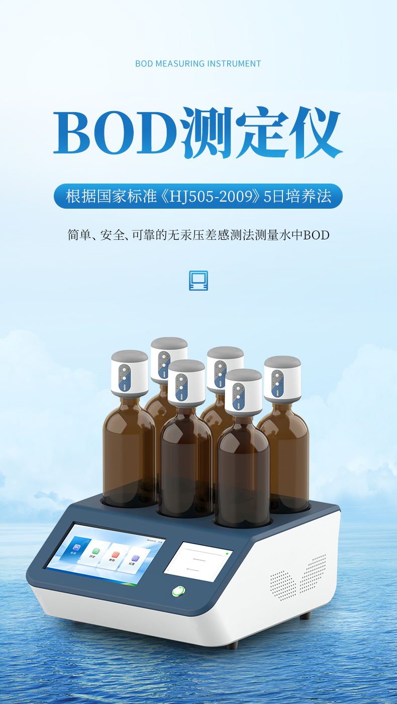 BOD生化需氧量測(cè)定儀是根據(jù)國(guó)家標(biāo)準(zhǔn)《HJ505-2009》5日培養(yǎng)法,模擬自然界中有機(jī)物的生物降解過程,采用簡(jiǎn)單、安全、可靠的無(wú)汞壓差感測(cè)法測(cè)量水中BOD;全智能化設(shè)計(jì),領(lǐng)先的研發(fā)工藝和設(shè)計(jì)制造,實(shí)驗(yàn)過程無(wú)需實(shí)驗(yàn)人員值守;適用于排污企業(yè)、環(huán)境監(jiān)測(cè)、污水處理廠、第三方檢測(cè)機(jī)構(gòu)、科研、高校等領(lǐng)域的生化需氧量測(cè)定。