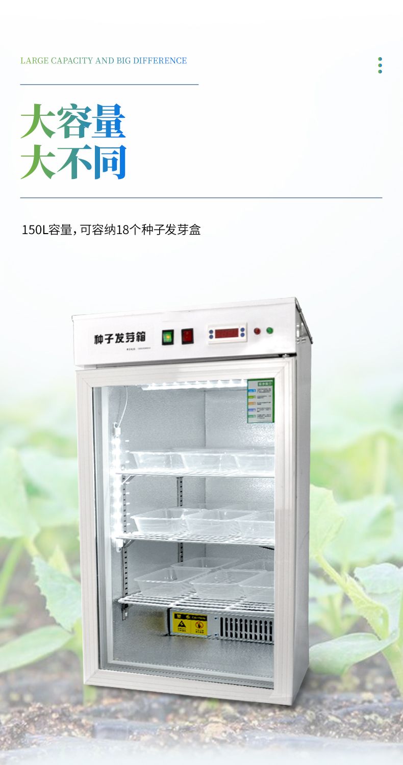 2、此箱可在不同地區(qū)不同季節(jié)使用不同的種子恒溫快速發(fā)芽,由于恒溫的作用,使種子的蛋白酶等化學(xué)物質(zhì)迅速分解反應(yīng),避免了溫差出芽造成的能量丟失,使種子出芽后抗病力強(qiáng),提高幼苗免疫能力,縮短了種子的出芽的時(shí)間。經(jīng)該器械出的幼芽,芽苗質(zhì)量好,成活率高。