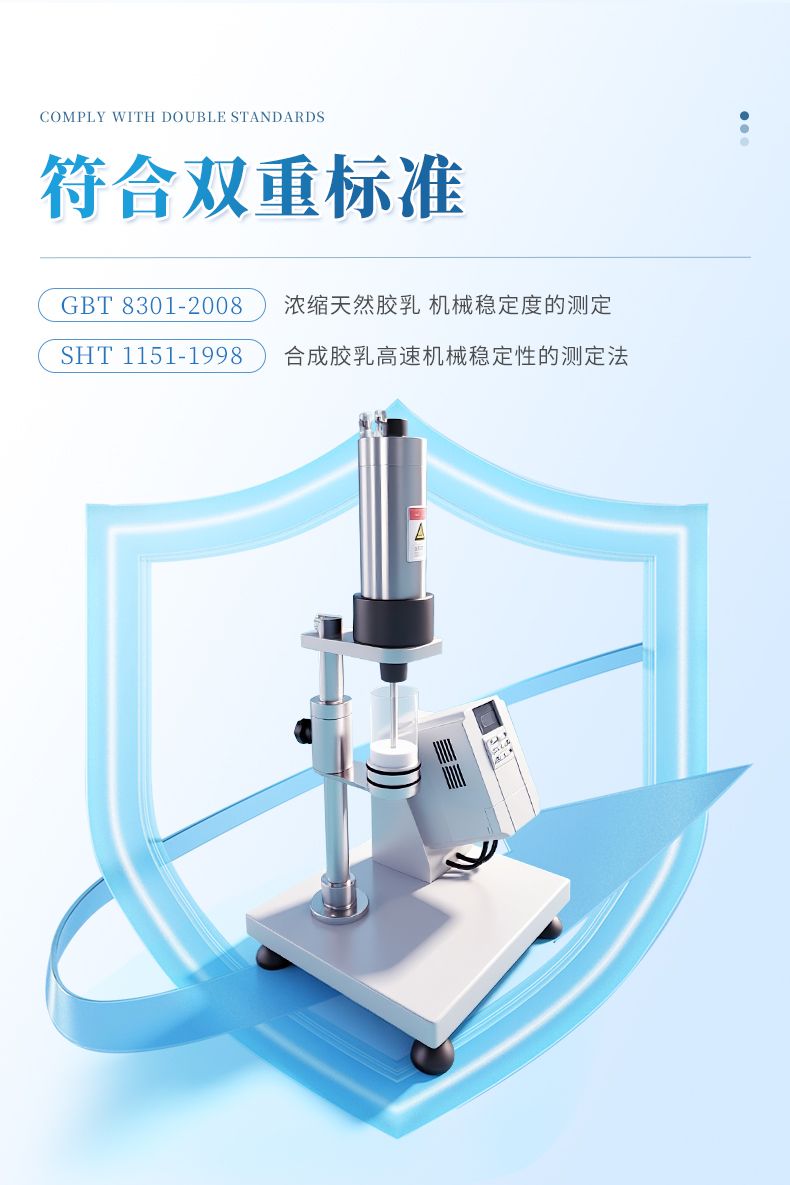 乳膠高速機(jī)械穩(wěn)定性測試儀,符合《GBT 8301-2008 濃縮天然膠乳 機(jī)械穩(wěn)定度的測定》和《SHT 1151-1998 合成膠乳高速機(jī)械穩(wěn)定性的測定法》標(biāo)準(zhǔn)要求。該儀器主要適用于膠乳生產(chǎn)單位和科研院所對天然膠乳和合成膠乳做機(jī)械穩(wěn)定性測試,是提高膠乳質(zhì)量必不可少的儀器。